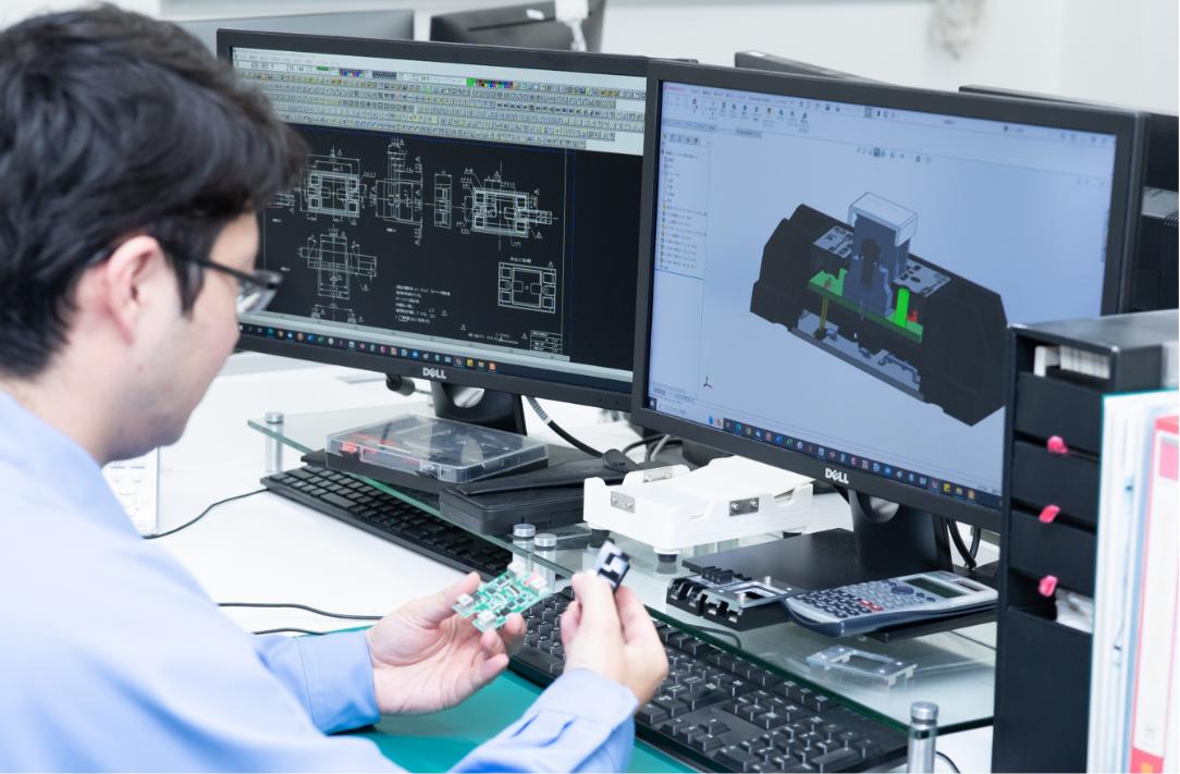 筐体や構造の設計の多くは3DCADで行ない、状況に応じて3Dプリンタを活用し形状確認を行う事があります